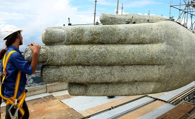 A estátua pesa 1.145 toneladas.