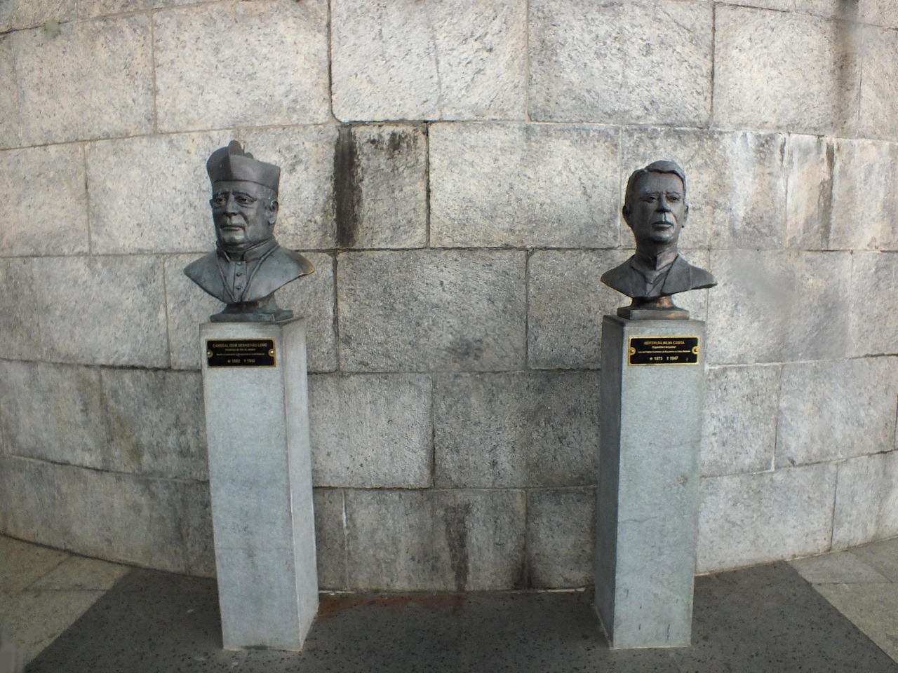 Busto do Cardeal Dom Sebastião Leme à esquerda e de Heitor da Silva Costa à direita.