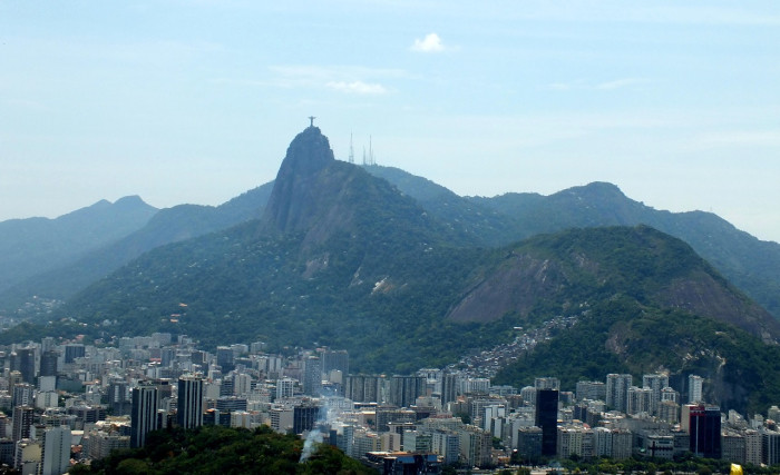 Ao longe, no alto do Morro do Corcovado, a estátua do Cristo Redentor abençoa a cidade com seus braços abertos, uma visão inspiradora.