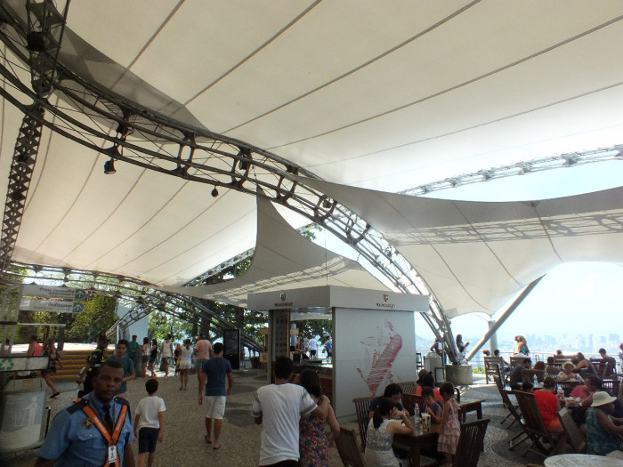 Assim como no Morro da Urca, no alto do Pão de Açúcar também tem lojas, restaurantes e lanchonetes.