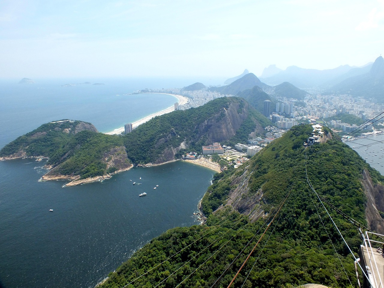 Praia Vermelha à esquerda e Baía de Guanabara à direita.