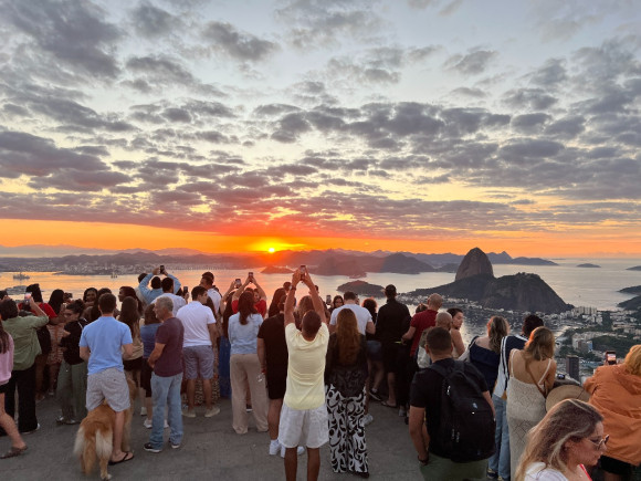 Ipanema é famosa por seu pôr do sol no Arpoador, onde as pessoas se reúnem para assistir ao espetáculo do entardecer.