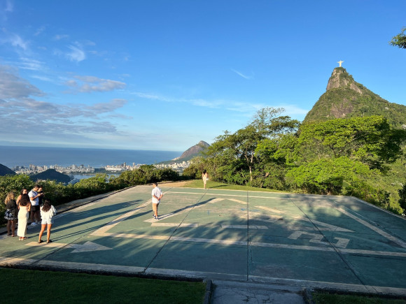 Do mirante dá pra ver o Cristo Redentor de um ângulo bem especial. Nós chegamos com o dia ainda escuro e vimos o Cristo iluminado pelos holofotes. À medida que o dia vai clareando, forma-se esse cenário maravilhoso que mais parece uma pintura!